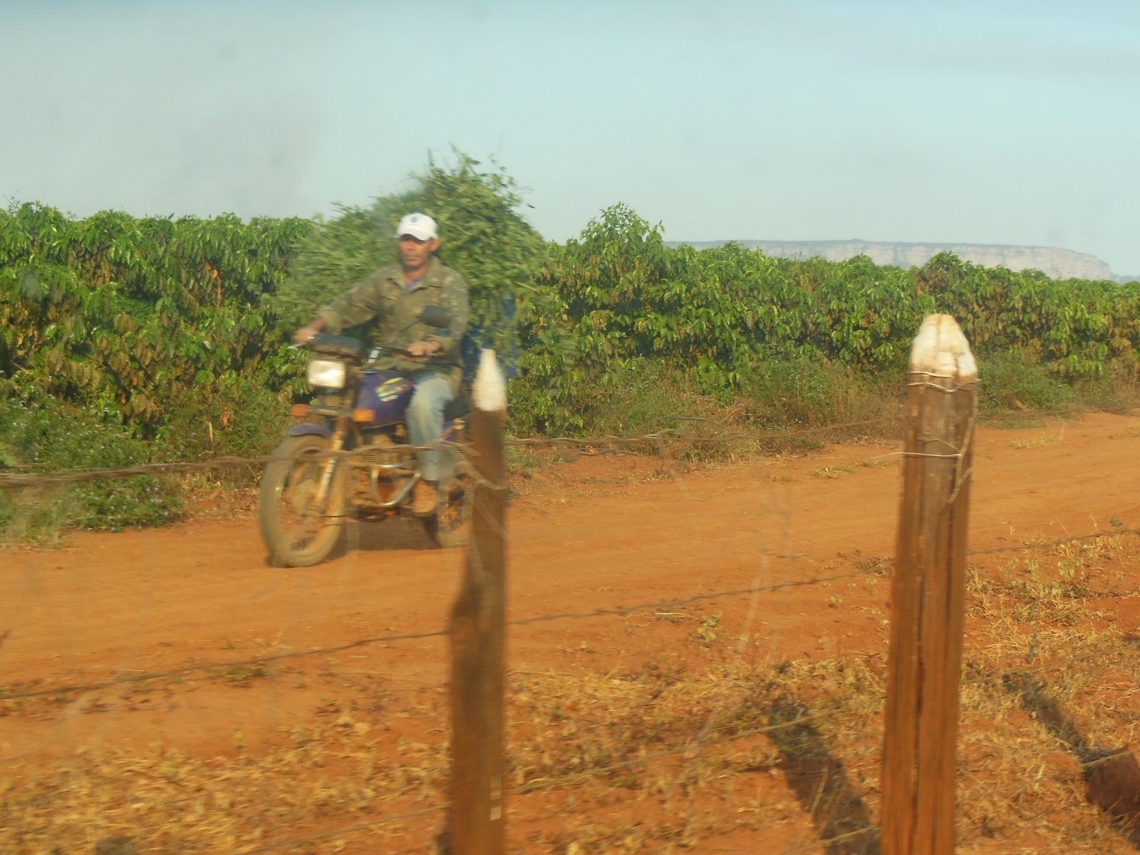 Voltamos por estradas de terra ao norte da Chapada onde a seca ainda não destruiu tudo. Ainda tem café, tomate, mandioca e plantação de cactos, que eles comem e dão para os animais.