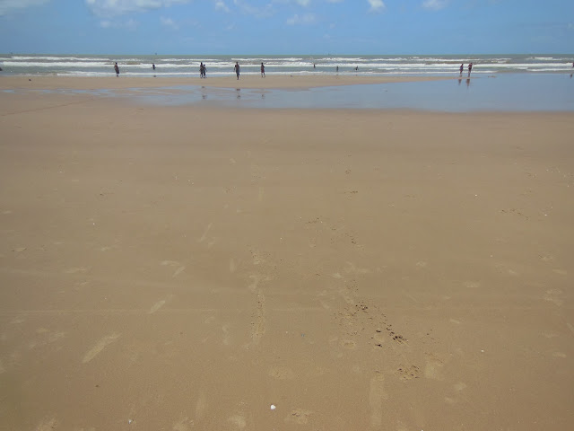 A praia de Atalaia foi aterrada mas, acho que exageraram na quantidade de areia. Um trator passa penteando a enorme faixa de areia. As águas são escuras por conta do rio Sergipe que atravessa a cidade e deságua no mar em frente.