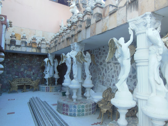 O pedreiro disse que ele trás de fora do país as várias esculturas de pedras e de bronze e não se incomoda de gastar dinheiro. As vezes uma parte está pronta e ele manda demolir e fazer de novo.