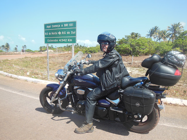 Fomos no farol que esta bem na virada do Brasil e que alguns chamam de cotovelo, esquina ou calcanhar do Brasil. Chegamos onde começa a BR 101, que vai terminar no Rio Grande do Sul, daqui a 4.542 km.