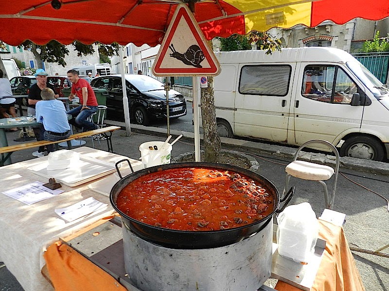 O dono de uma das barraquinhas me deu o escargot para provar e eu comi para não ser desagradável. Por aqui o caramujo é nobre, largamente cultivado e todos comem. Eu comi “shó um”, como diz a Sophia.