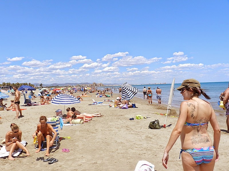 Voltamos para Gándia, na praia onde encontramos a melhor estrutura e ficamos deitados sob o sol, por um bom tempo, esperando a vida passar, vendo as pessoas se divertirem naquela bela estrutura para banhistas.