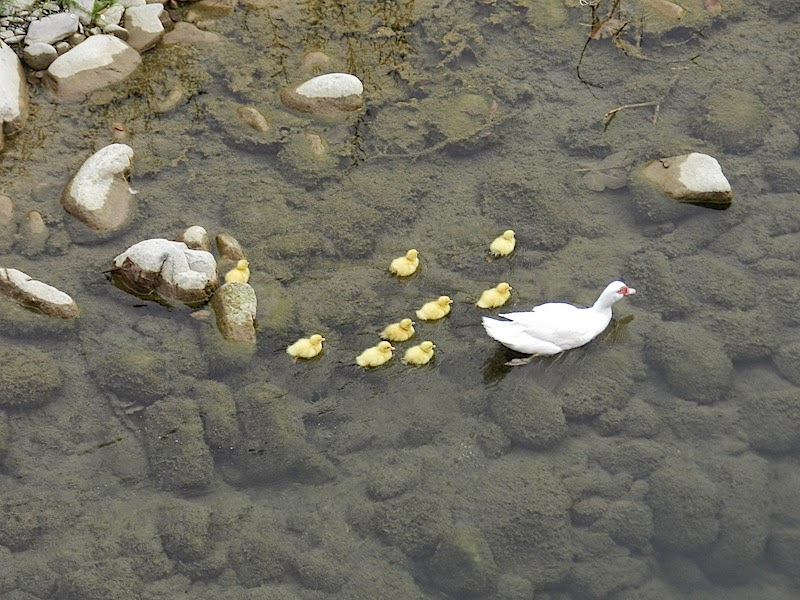 Paramos em um rio, com poucas águas de final de verão e ficamos apreciando mais um presente da natureza. Próximo da bela ponte, ficamos observando a mãe pata ensinando seus patinhos a nadar, mostrando a eles os perigos aparentes nas águas transparentes.