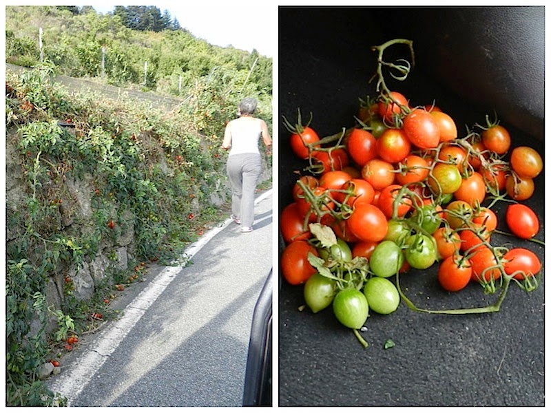 Seguimos viagem, quando Ade pediu para eu parar. Desceu e foi colher tomates do alheio. Tentei impedi-la mas o gosto de colher o fruto no pé foi maior e ela fez uma pequena feira. Como ela disse, “só peguei os que estavam na estradas”.