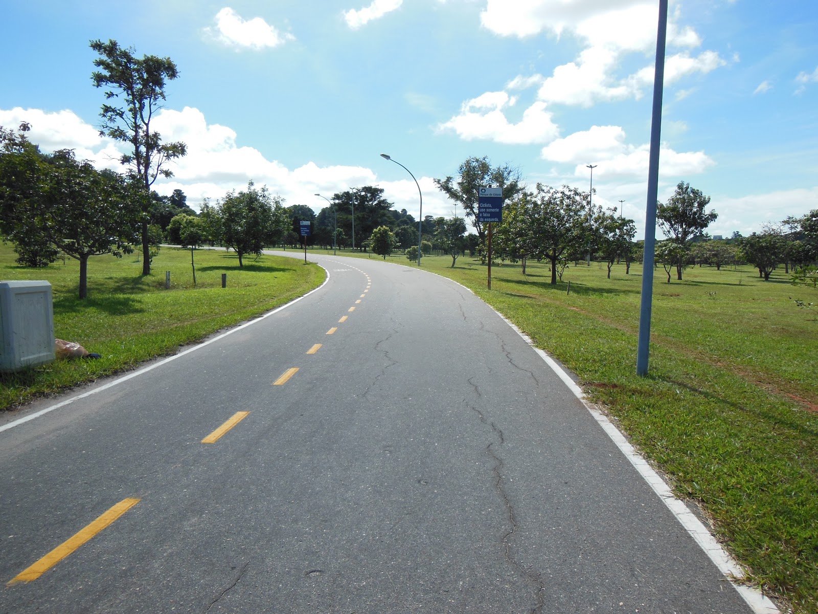 Entramos de um lado e saímos do outro lado do parque. A faixa maior do asfalto é para pedestres e a menor para ciclistas.