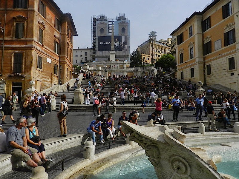 Paramos novamente na “Piazza di Spagna, observar a grande quantidade de pessoas que se reúnem para fazer nada, só esperando o tempo passar e muitos na fila para serem fotografados ao lado do barco.