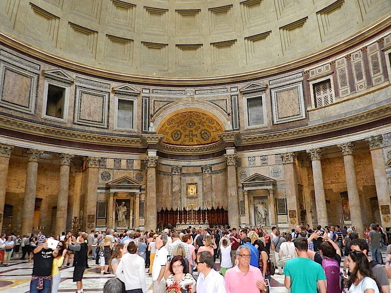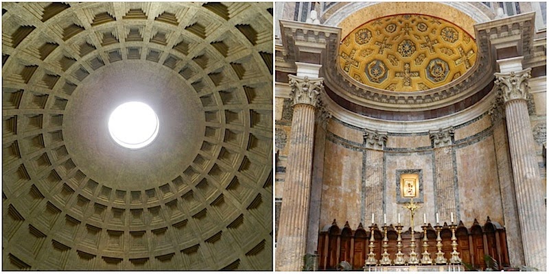 O Panteão é famoso por sua bela cúpula, com 43 metros de altura, a mesma medida do diâmetro da base.