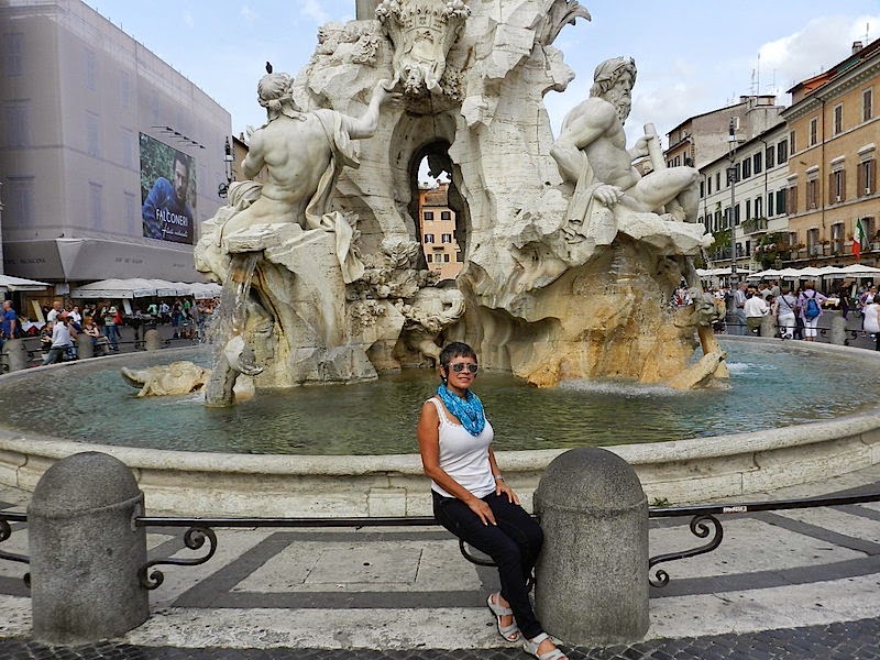 Naquele local existia a única fonte de água potável em Roma. A praça foi destruída e depois reurbanizada com esculturas enormes. Durante nossa visita a Fonte estava em reforma, cheio de tapumes, não vimos quase nada da obra de arte consagrada.