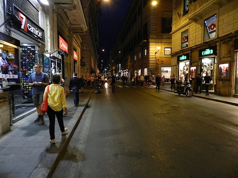 Passamos pela “Via del Corso”, uma das principais ruas de comércio de Roma, com praticamente todas as melhores marcas mundiais da moda. A Via cruza o centro histórico e vai da “Piazza Venezia” até a “Piazza del Popolo”.
