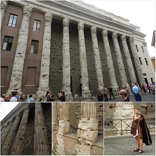 Passamos pelo Templo Adriano, construído para homenagear o Imperador Adriano, que hoje é um edifício comercial, já bastante modificado.