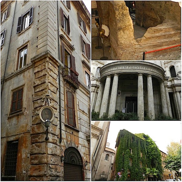 Encontramos o Panteão, construído em 27 a.C., ainda em bom estado de conservação. Desde que foi construído está sendo utilizado. Primeiro como templo dedicado aos deuses, depois como templo cristão e agora como importante ponto de visitas em Roma.