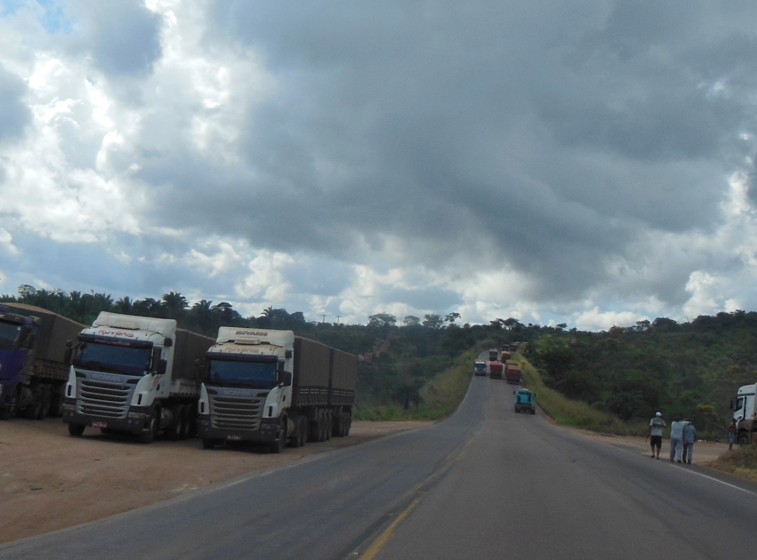 Quando encontramos paradas para reforma do asfalto eram dezenas de caminhões na fila. Diante de tanto movimento poucos veículos pequenos trafegam pela rodovia que liga Cuiabá ao Sul do país, especialmente São Paulo.