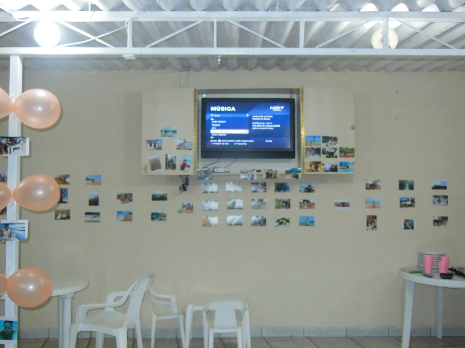 A Paula e a Bruna fizeram uma decoração que achamos fantástica. Revelaram 280 fotos da nossa aventura, colaram pelas paredes do salão, armários, geladeira e sobre as mesas.