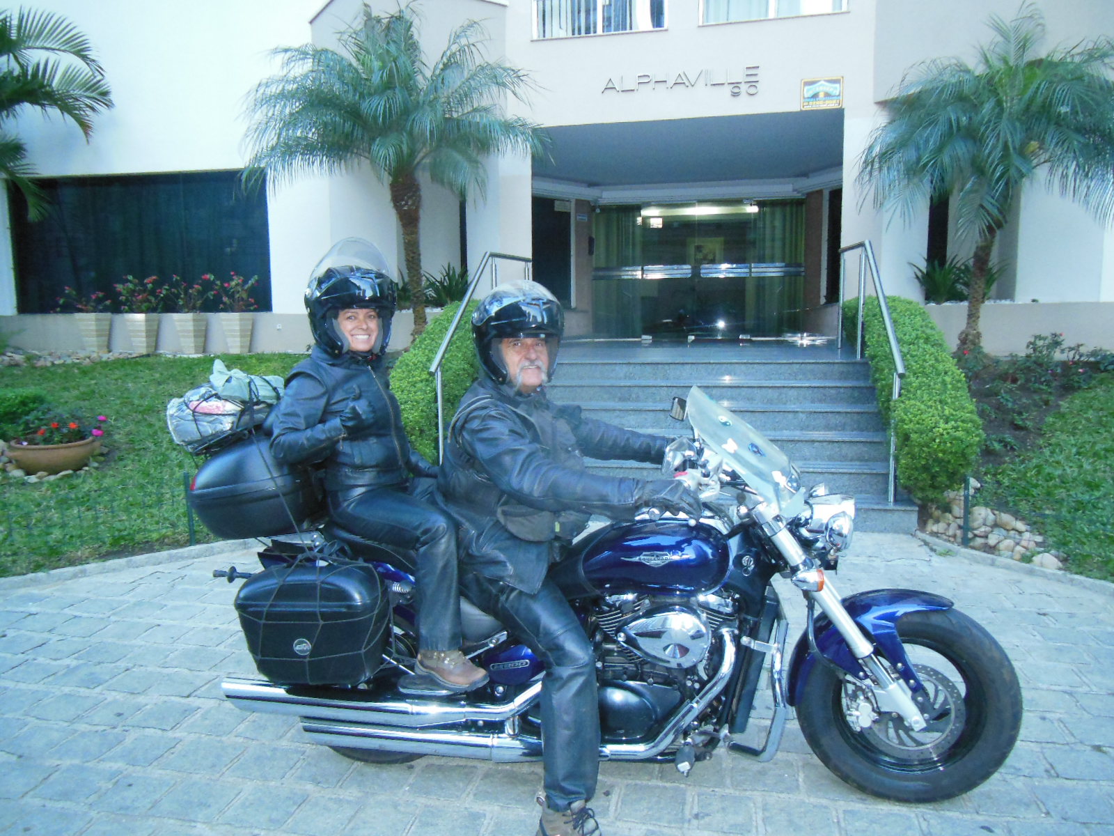 Aproveitamos para fazer uma foto na frente do prédio e uma outra foto que eu sonhei e planejei antes do início da viagem, em julho de 2.012. A foto, feita pela Ade foi eu deitado no chão, como agradecimento por todo chão que passamos neste País, sem nenhum percalço, somente emoções, aprendizado, amizades e muita alegria. Tudo valeu a pena.