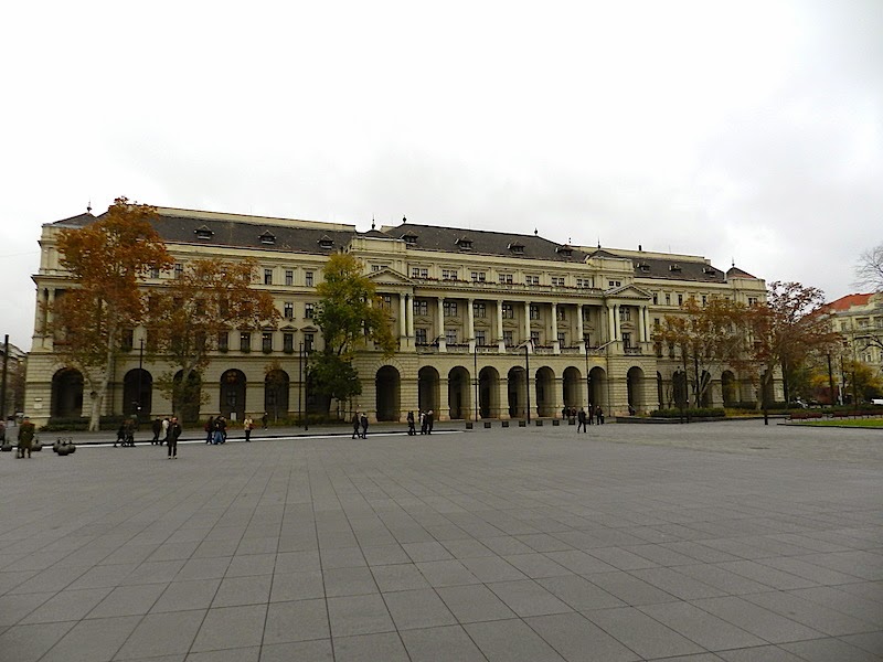 Saímos do Parlamento, andando pelas ruas com belos edifícios dos dois lados e, chegando na praça “Szabadság tér”, paramos um tempo ainda encantados com as belas edificações.