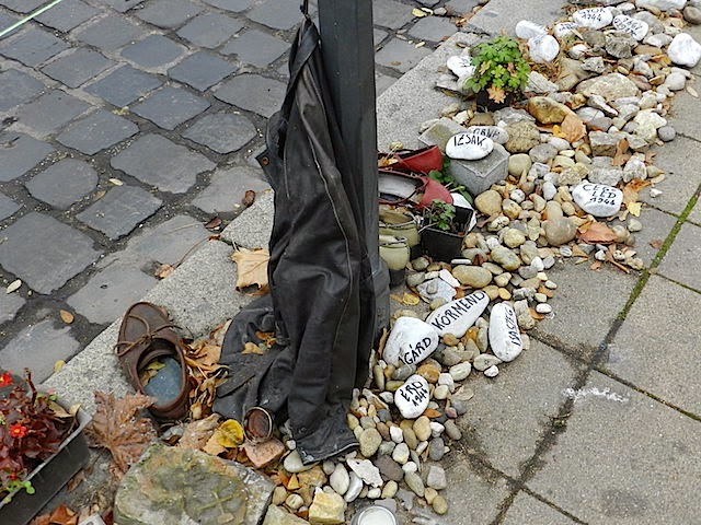 Em frente a um monumento, uma manifestação expõe algumas peças esquecidas pelas guerras que assolaram a região.